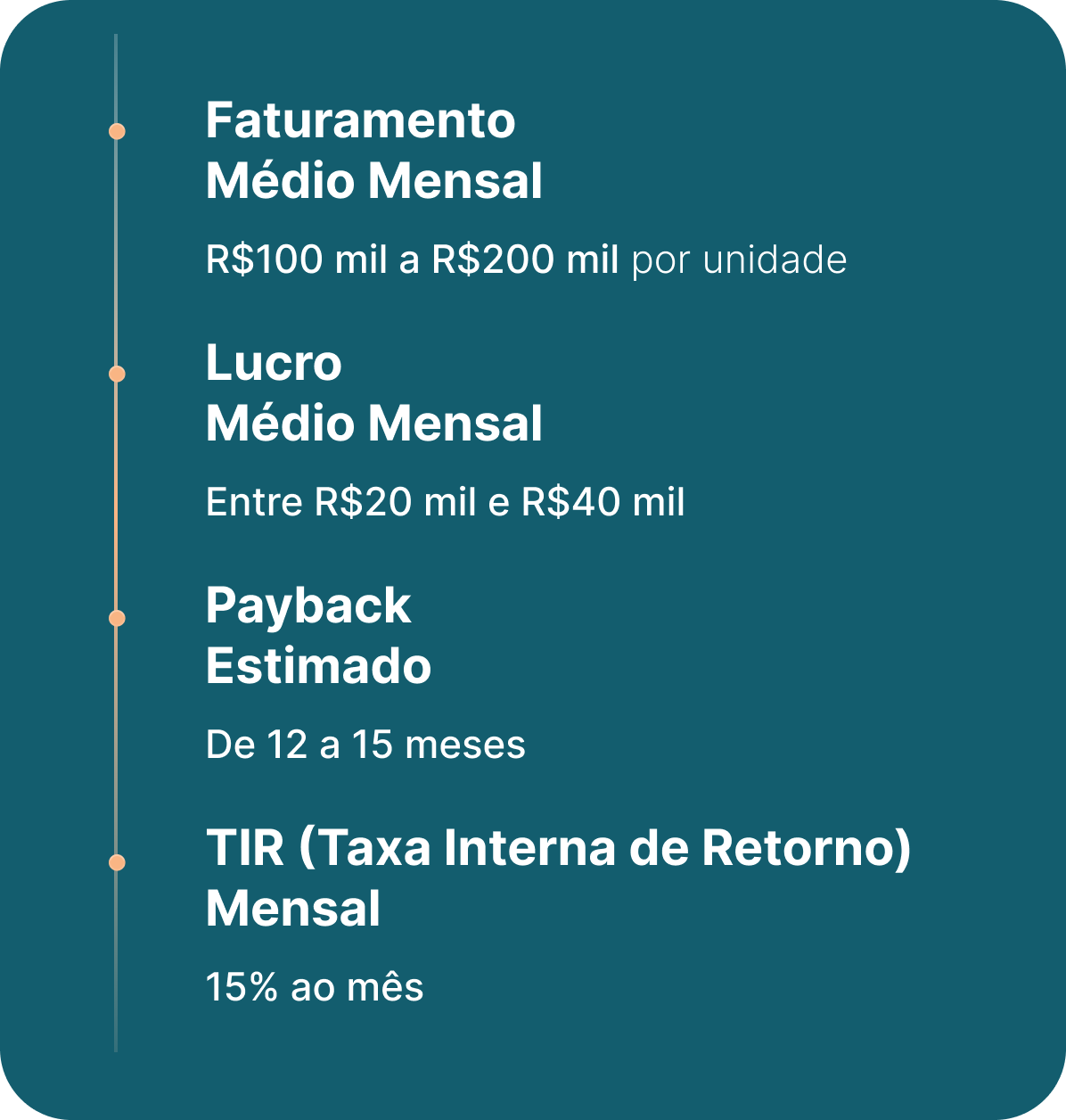 Nossa operação já validada oferece resultados reais e consistentes, com indicadores financeiros que comprovam o potencial de retorno do nosso modelo de negócio.